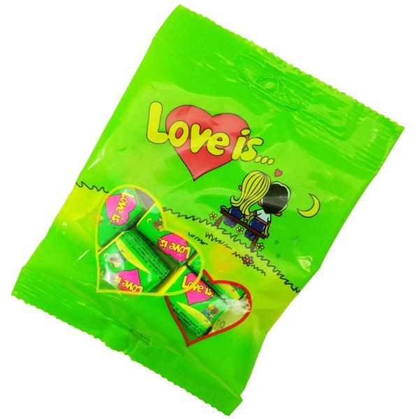 Мини-набор жвачек Love is... со вкусом яблоко-лимон. В пакете 5 жвачек в индивидуальной обертке.